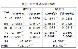 2.内生性分析。本文选择工具变量最小二乘法(IV-2SLS)进行内生性检验,以克服内生性问题。